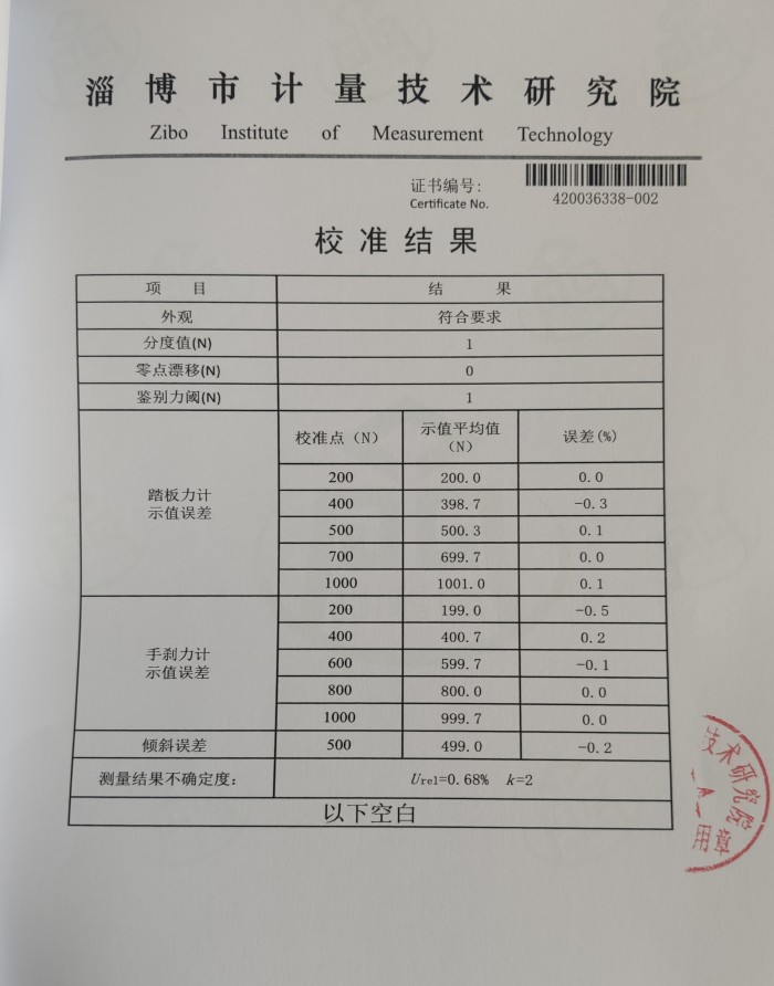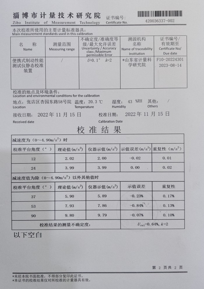 b)減速度測量值為其他值時,示值誤差為:±1.0 %(國標(biāo)是2%)。